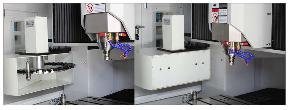 自動(dòng)換刀系統(tǒng):本機(jī)標(biāo)配自動(dòng)換刀系統(tǒng),該系統(tǒng)具備高速自動(dòng)換刀功能,換刀速度快且刀庫(kù)容量大,能夠有效提升加工效率,節(jié)約人力成本。